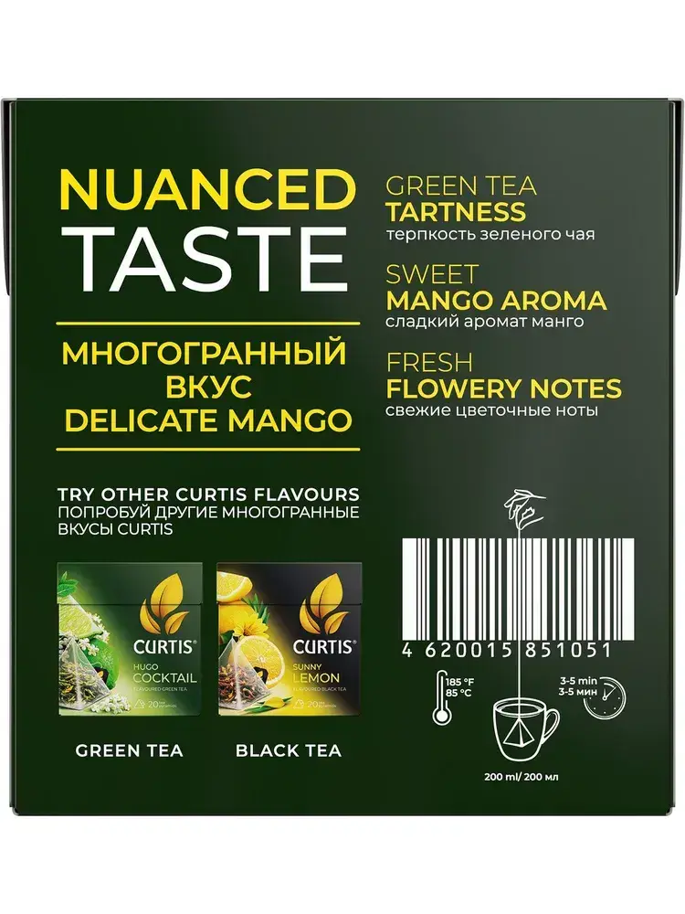 Чай в пирамидках зелёный Curtis Delicate Mango, 20 шт