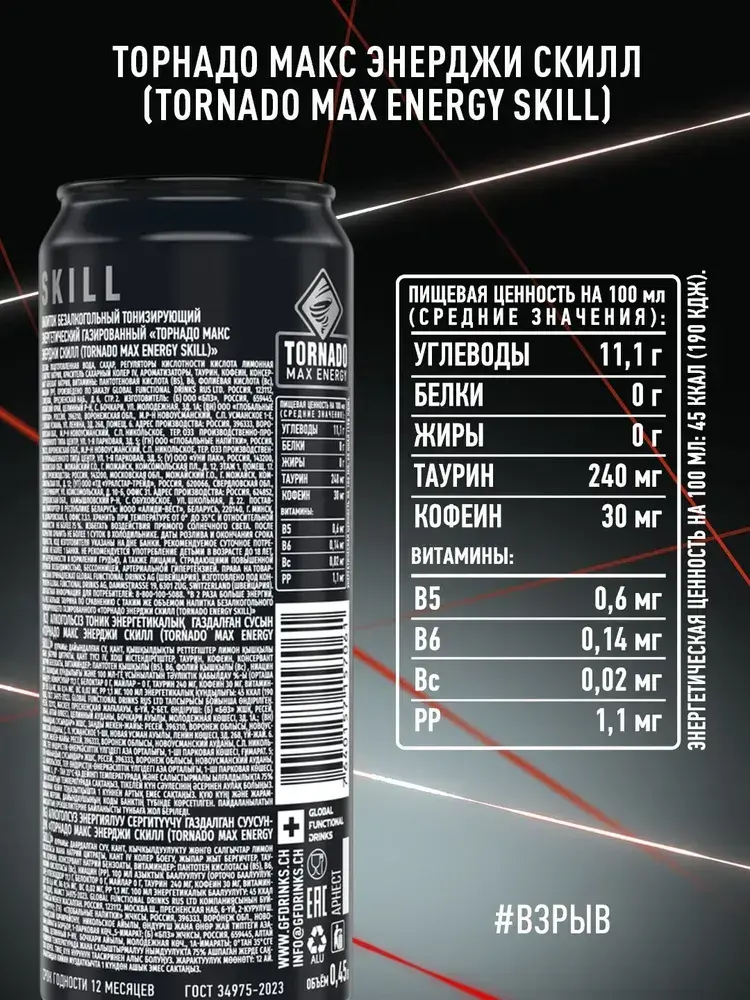 Энергетический напиток Tornado Max Skill, 450 мл