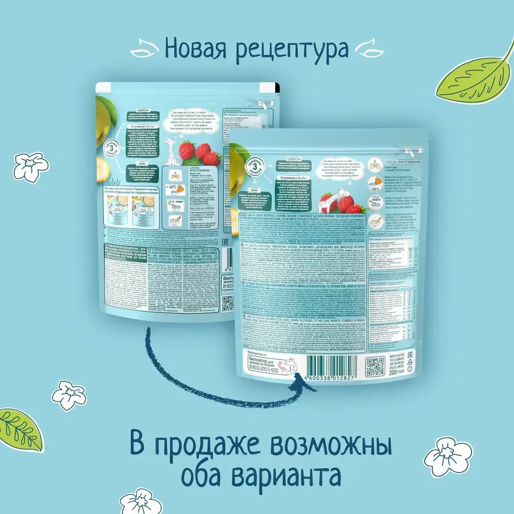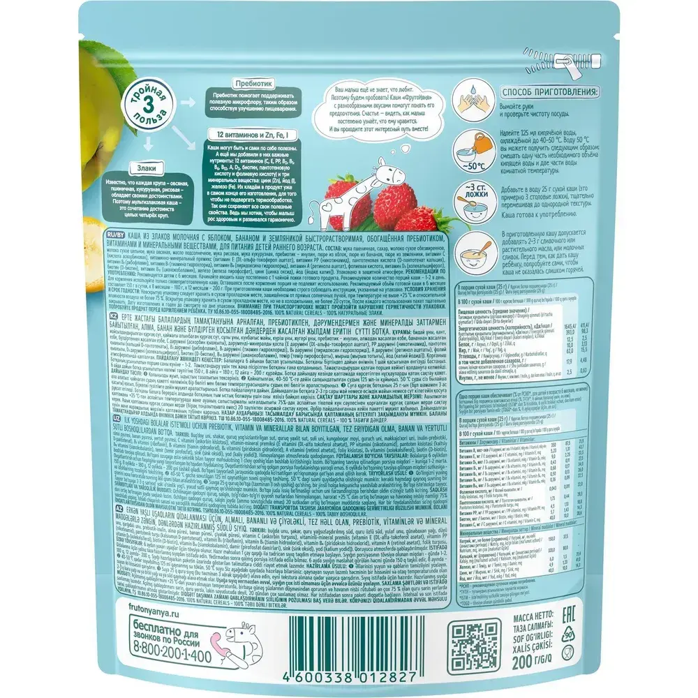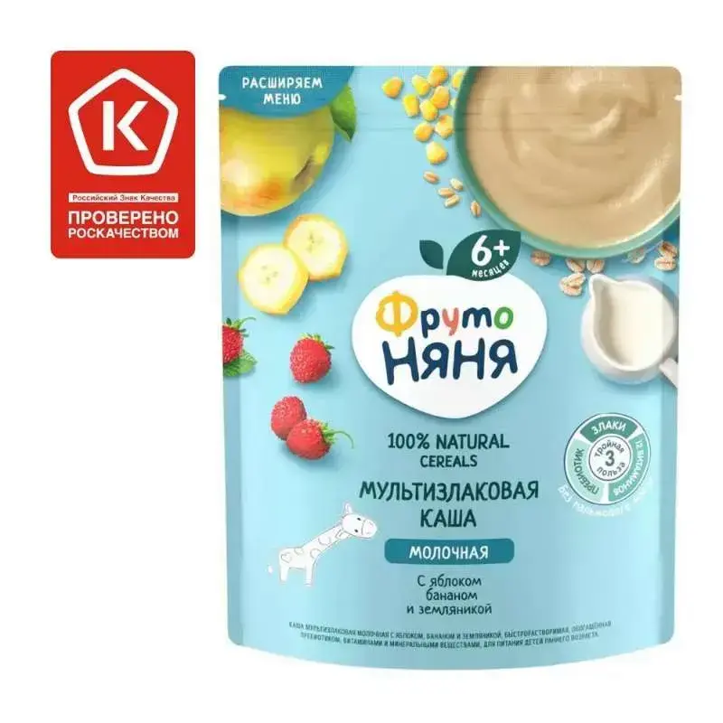 Каша мультизлаковая детская ФрутоНяня с 6 месяцев, с яблоком, бананом, молочная, сухая, 200 мл