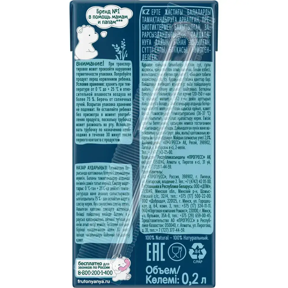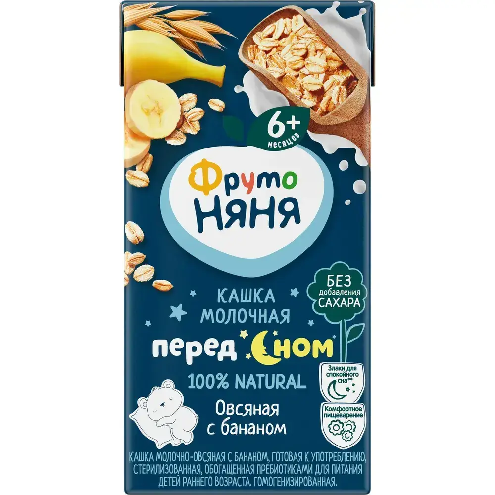 Каша овсяная детская ФрутоНяня с 6 месяцев, с бананом , молочная, жидкая, 200 мл