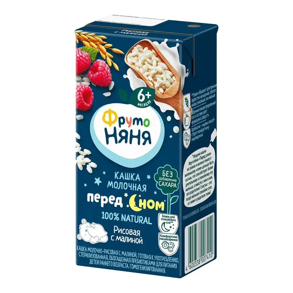 Каша рисовая детская ФрутоНяня с 6 месяцев, с малиной , молочная, жидкая, 200 мл
